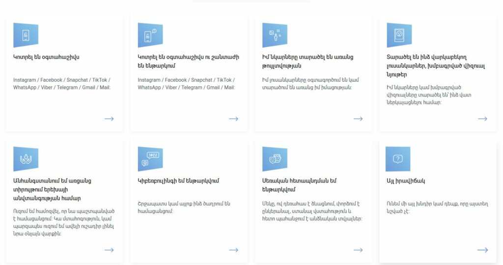 Հարգելի հայրենակիցներ։ Մենք ստեղծել ենք մի հարթակ, որտեղ դուք կարող եք գտնել լուծումներ հիմնական թվային անվտանգության հետ կապված հարցերի վերաբերյալ։ Տո էլ կոտրել են Վայբերը, էլ Տելեգրամը, Ֆեյսբուքը։ Մենք սա ստեղծել ենք երեխաների համար – բայց դուք, մեծահասակները նույնպես կարող եք օգտվել։ Հղումը տեղադրում եմ առաջին մեկնաբանությունում։ Օգտվեք, տարածեք, ինքնուրույն վերականգնվեք։
